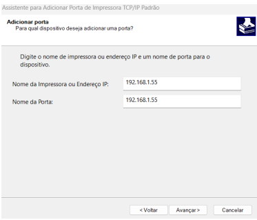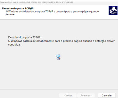 Passo 7: O Windows irá configurar a porta TCP nas configurações deportas de impressão do Windows