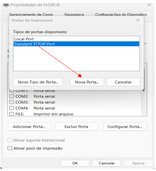 Passo 4: E selecione Standard TCP/IP Port, clique em nova porta.