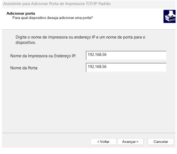 Passo 6: Com a tela de configuração de porta aberta coloque o endereço de IP que você obteve no passo 5 nos campos como mostrado na imagem a baixo e clique em avançar.