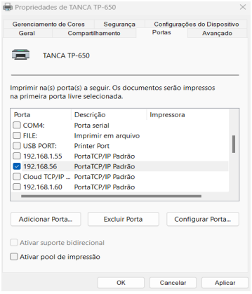 Passo 8: Após finalizar o processo da criação da porta TCP seleciona nas propriedades da impressora instalada na aba portas a porta que acabamos de configurar e clique em aplicar.