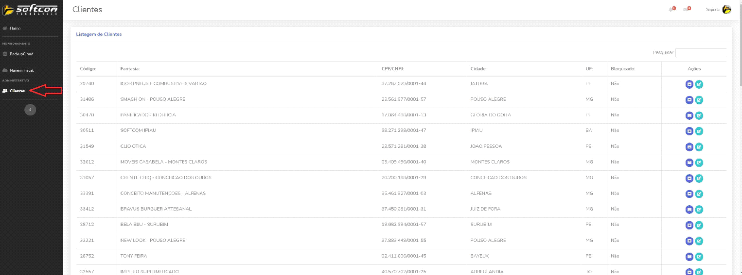 **Passo 3: **Acessar o menu "Clientes" na barra lateral;