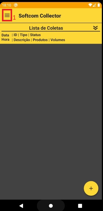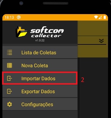 Passo 2: Com o Softcom Collector aberto, acesse o menu lateral conforme imagam (1);