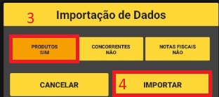 Passo 3: Clique na opção importar dados (2). Como estamos querendo realizar um balanço aperte em produtos para que ele fique dessa maneira (3) e depois aperte importar (4).