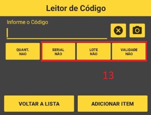 Passo 9: Caso você tenha produtos que são controlados por lote e/ou validade selecione (13).