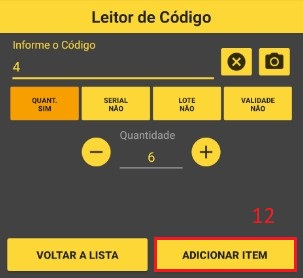 Passo 8: Veja como fica a coleta de um item, após digitar as informações clique em (12).