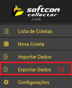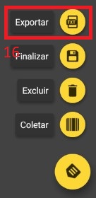 Passo 11: Para exportar apenas essa coleta clique em (16) se você fez mais de uma coleta e quer exportar todas juntas use o menu lateral (17) e depois (18).