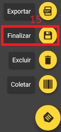 Passo 10: Quando terminar a coleta clique em (14), e clique em finalizar (15).