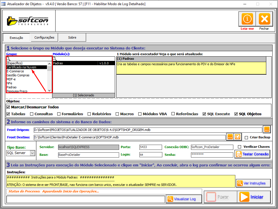 1.0. Acessar o Helptools e realizar o download do Atualizador de Objetos. E selecione o grupo Certificado na Nuvem