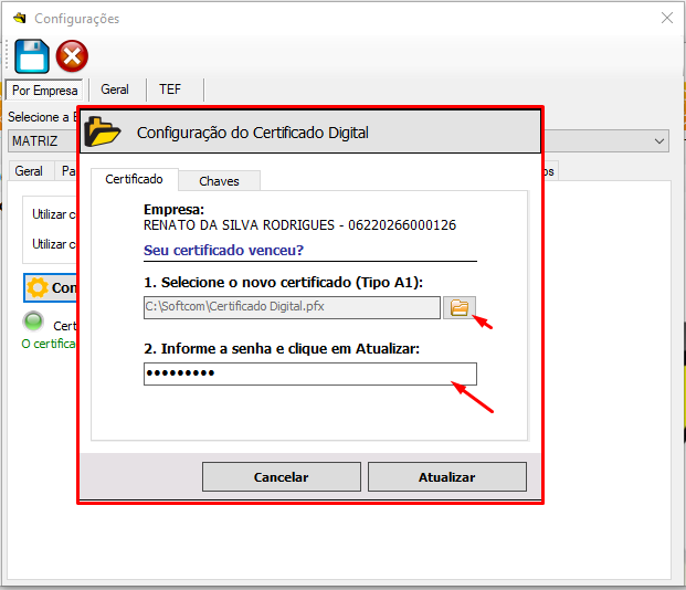 Lembrando que só é possível realizar essa configuração para certificados do tipo A1.