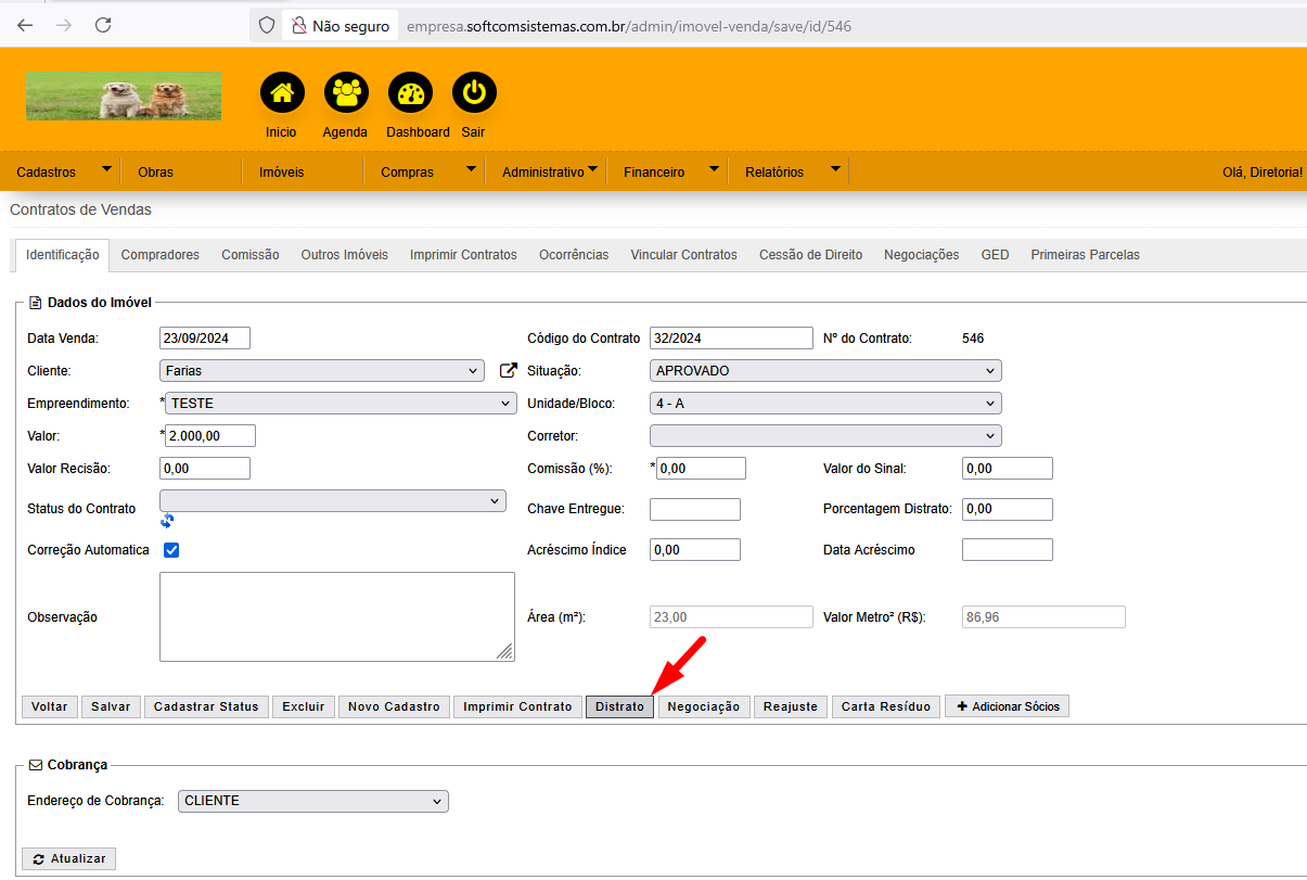 é o valor que terá que pagar do Distrato que será gerado Causa:
