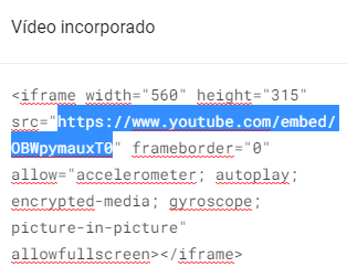 Será aberta a janela informando o código iframe do vídeo, onde podemos copiar o link embed , selecionado em azul. Nesta tela, também podemos visualizar a duração total do vídeo clicando no botão Play. Essa informação será necessária para cadastrar o vídeo na Área Cliente e Helptools posteriormente. Copiado o link, adicione-o à descrição do card do vídeo no Trello.