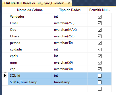 Na tabela SMobile_Sync_Clientes os campos "SQL_Id" e "SSMA_TimeStamp" estão para não permitir valor nulo, ou seja, exigem preenchimento, mas não participam da rotina.