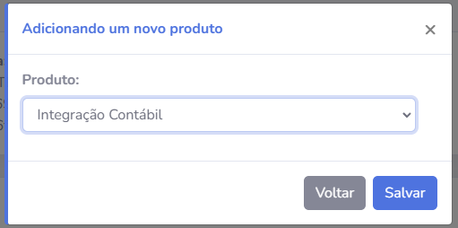 1. Acessar o portal de serviços e adicionar o produto Integração Contábil ao cliente.