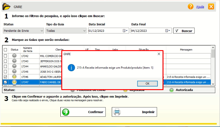 Emissor NF-e - GNRE: 215 - A Receita informada exige um Produto!