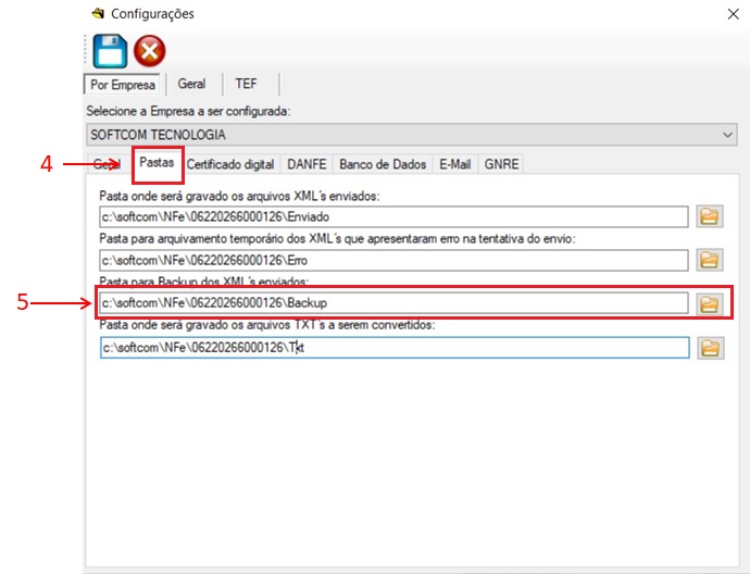 Nao opção (5) é possível direcionar para uma outra máquina ou para uma outra unidade no computador,a pasta para backup dos XML's das notas emitidas.
