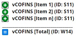 O cálculo do Total do COFINS da NF-e é feito a partir do somatório do Valor do COFINS de cada item: