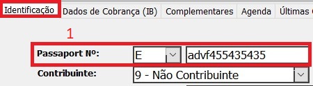 1 - Verificar no cadastro do cliente se o campo Passaporte N está preenchido com E, e o número do passaporte. (1)