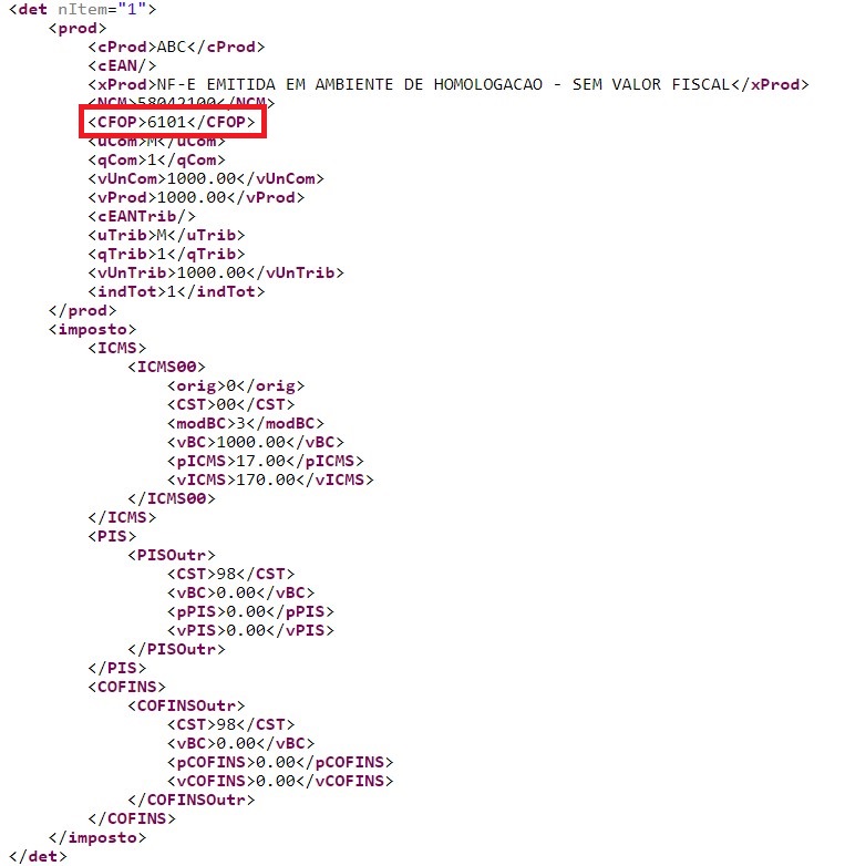 Veja regra de validação da Sefaz: