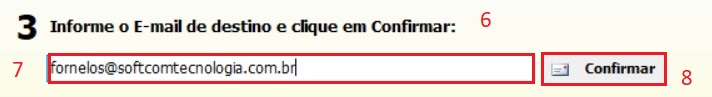 4 - o sistema vai te pedir um email (6), coloque o email desejado (7) e confirme (8).