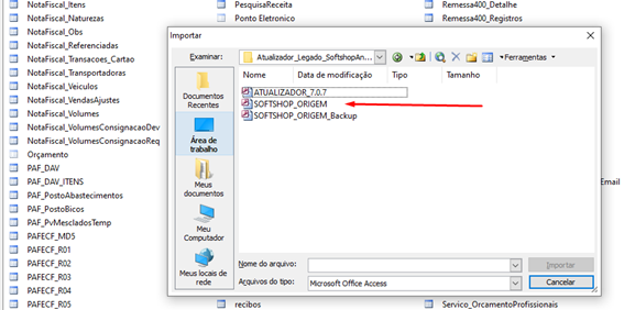 - ABRA A BASE DE DADOS NA ESTRUTURA, BOTÃO DIREITO “IMPORTAR...”, SELECIONAR O CAMINHO DO SOFTSHOP_ORIGEM