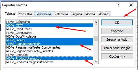 -SELECIONAR AS TABELAS QUE VOCÊ DESEJA IMPORTAR E DEPOIS “OK’;