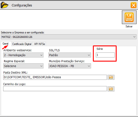 Configurando a Série da NFSe