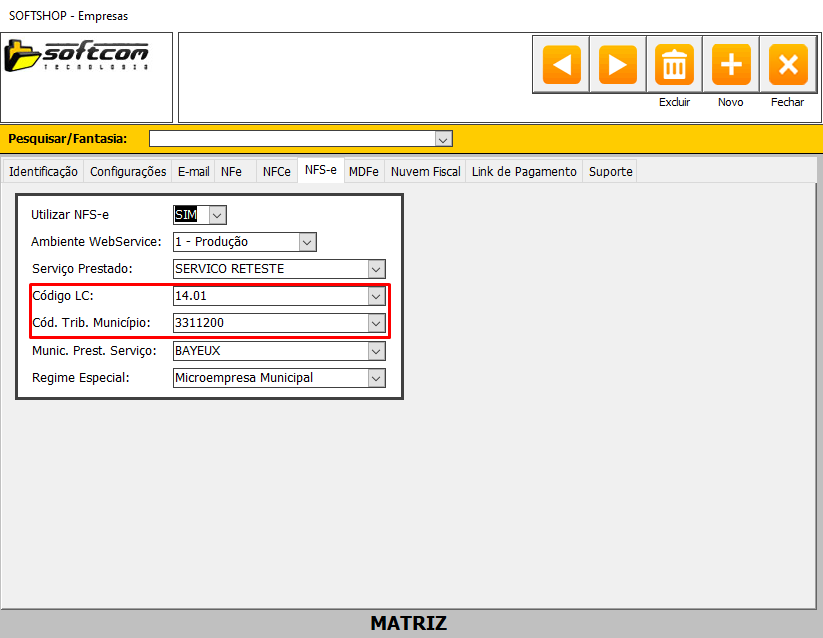 1- Versões a baixo da 9.6 seguir caminho no softshop CADASTRO> EMPRESA> NFSe.