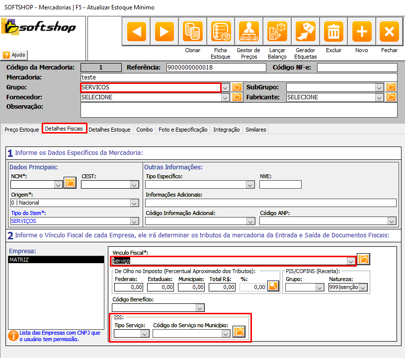 2- Versões superior a 9.7 segui o caminho no softshop, CADASTRO> MERCADORIA> ABA, DETALHES FISCAIS.