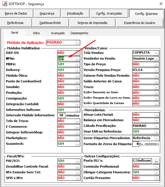 1. Habilitar NFS-e no Formulário de Segurança.
