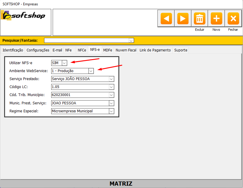 9. A aba API NFSe estará visível se o sistema do cliente for Softshop >= 9.6.0.0 ou Versão Banco >=70.