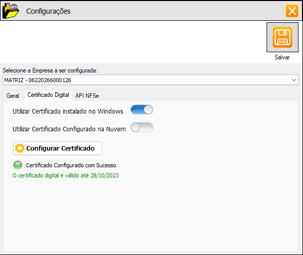 Verificar se o cliente já instalou o Certificado Digital no computador que o Emissor será instalado.|