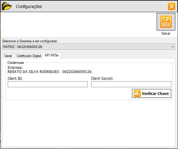 9.3. Clicar em "Verificar Chave " e em seguida em "Salvar ".