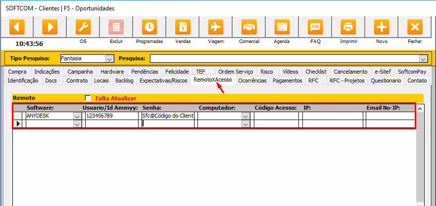 Para facilitar nossa comunicação com o nosso cliente, adotamos um procedimento simples, definir a senha do AnyDesk e preencher na aba RemotoXAcesso na agenda.
