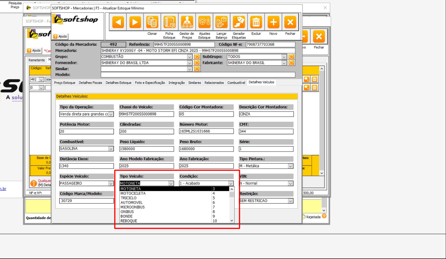 2- Dentro da aba detalhes veículo procure o campo Tipo veiculo e altere a opção para a correta