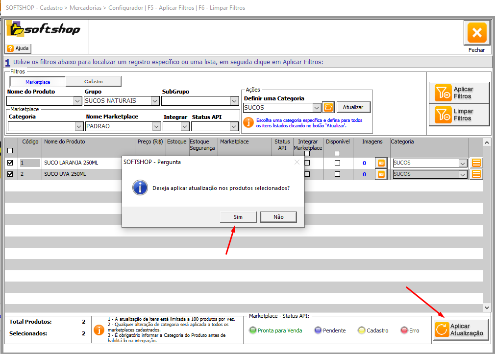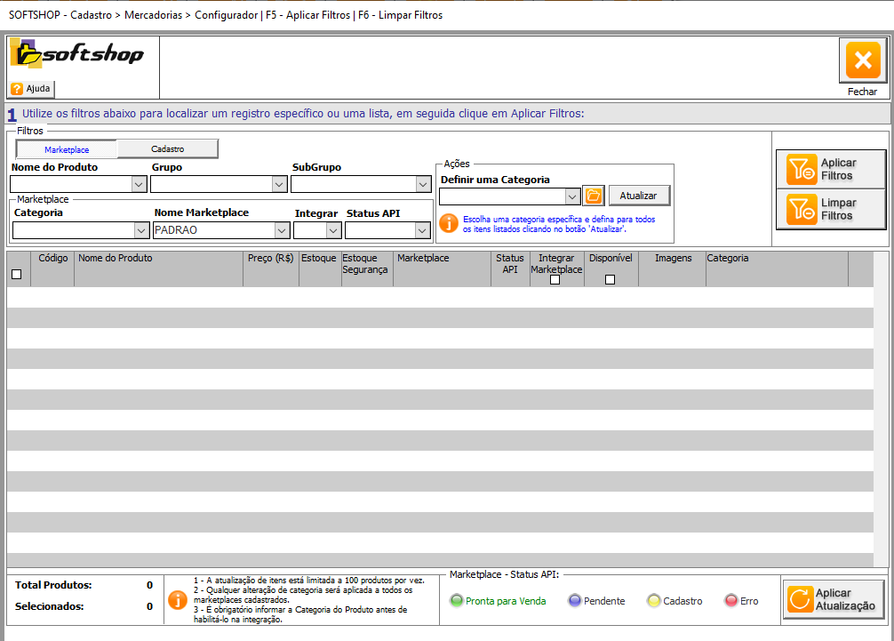 Integração Marketplace: SOFTSHOP > Utilizando o Configurador de Cadastros