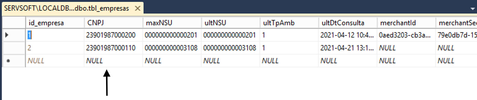 Passo 1: Acessar o banco da Nuvem pelo SQL Server, clicar com o botão direito na tabela tbl_empresas e selecionar a opção 'Editar 200 Linhas Superiores'.