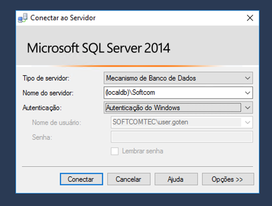 **Passo 3 : **Ao identificar o erro nesses 2 campos você deve abrir o SQL Server Management Studio e conectar-se ao banco da nuvem da seguinte forma: