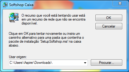 OBS: Pode ser necessário o setup do Softshop Caixa para que possa direcionar e recriar o cache. Direcionar o SetupSoftshop.exe clicar no OK.