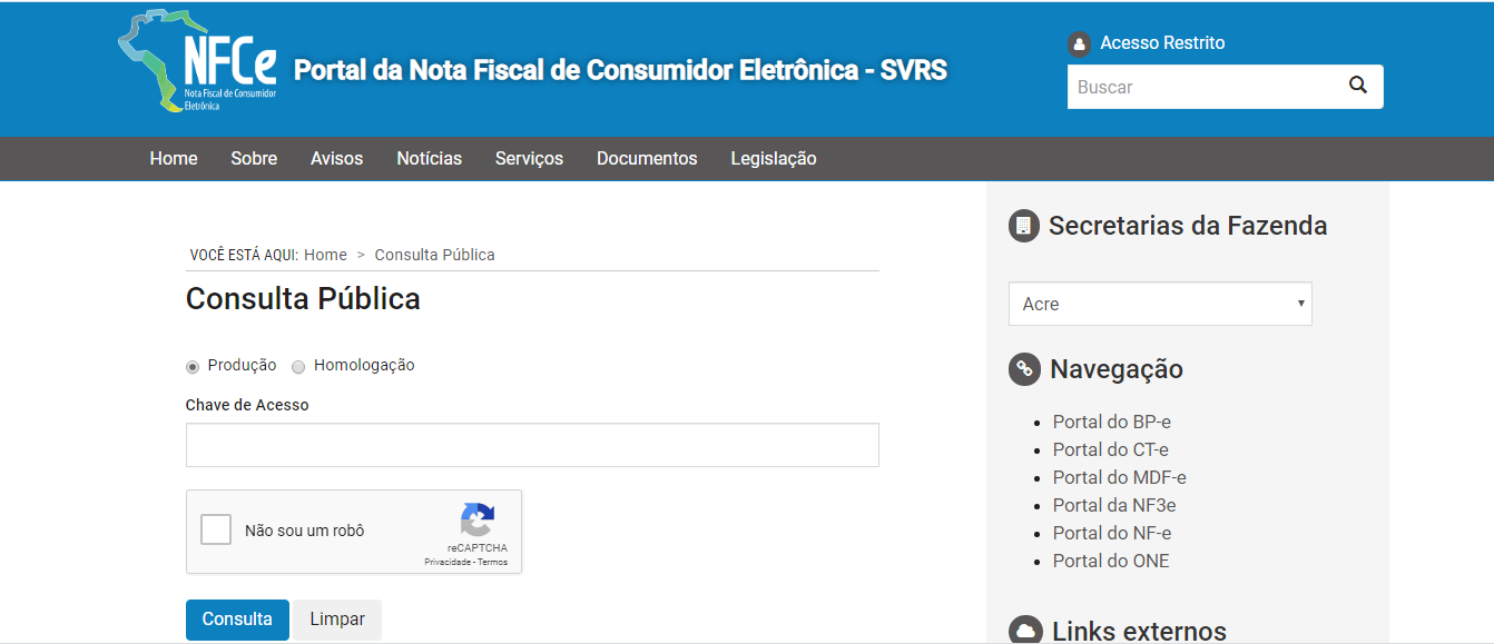 Não existir: Acessar este site na máquina do cliente. Informa a chave de acesso e o captcha, após isso faz o download do XML.