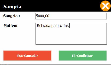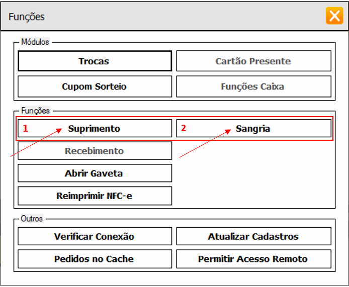 2- Selecione a opção Suprimento ou Sangria.