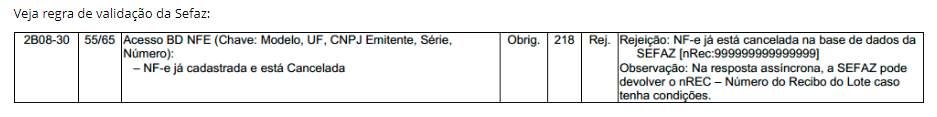 Tags: nfce, rejeição, nfe ja esta cancelada, base da sefaz