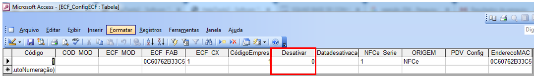 2 - Se a série estiver informada da maneira correta e o erro continuar, fazer backup do sistema, ir na tabela ECF_ConfigECF, desativar a série em questão e clica em Salvar novamente;
