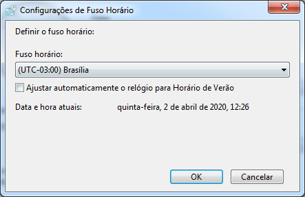 1 - Ir no Painel de controle, Data e Hora, clicar em Alterar Fuso Horário e desmarcar a opção "Ajustar automaticamente o relógio para Horário de Verão". Validar também se o fuso horário selecionado está o (UTC-03:00) Brasília. Verificar se o horário do computador vai mudar após realizado o procedimento.