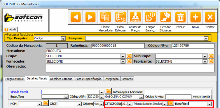 OBS: Caso não seja localizado, no cadastro de mercadorias, o código do benefício fiscal desejado, atualizar a tabela NFe_CodigosBeneficios, realizando a importação do SOFTSHOP_ORIGEM do Atualizador de Objetos.