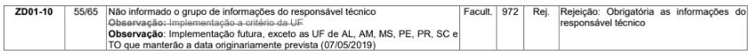 Rejeição: Obrigatória as informações do responsável técnico. (Rejeição 972)