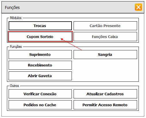 O Cupom Sorteio é uma função que possibilita o cliente a realizar sorteios e campanhas temáticas no seu estabelecimento, podendo gerar aumento nas vendas. Para utilizar o Cupom Sorteio existente no Softshop Caixa, devemos apenas orientar o cliente na parametrização da campanha para que os dados sejam corretamente impressos.