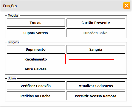 3 - Clicar na opção "Recebimento".