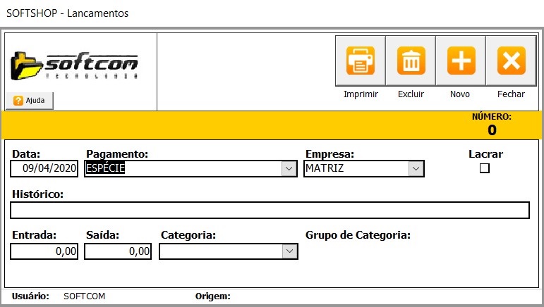 3.7 - O campo Saída recebe o valor em reais que será debitado no caixa.