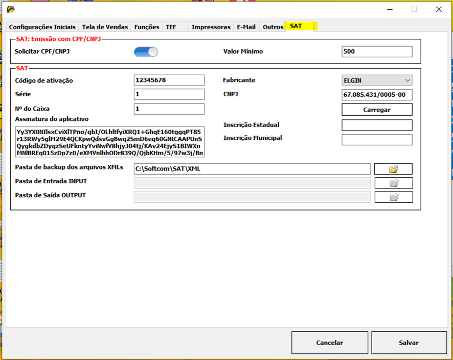 - No Sat Elgin a pasta do Satfica em > C:\Program Files\ElginTools\dllsat.dll