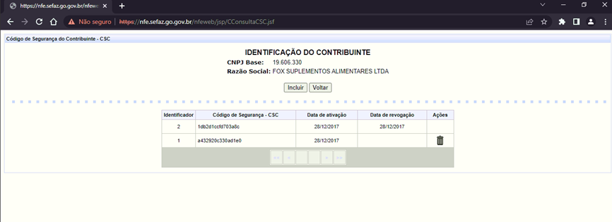 4 - Visualizar certificado, caso precise criar um novo CSC so clincar em Incluir.